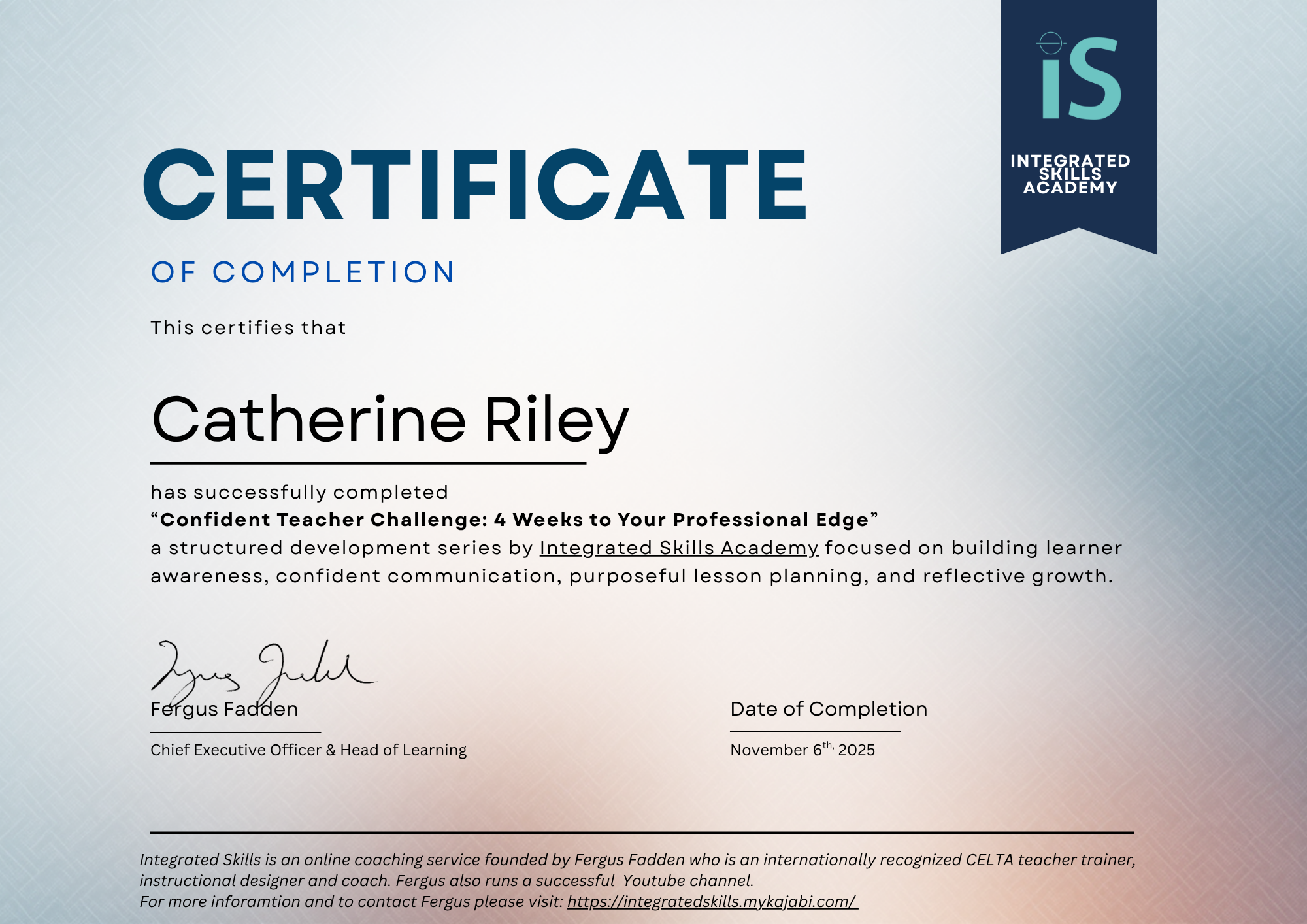 Welcome to the Integrated Skills Members Community — where CELTA trainees, TEFL teachers, digital nomads, and online coaches come together for support, weekly webinars, challenges and practical resources to help you succeed.